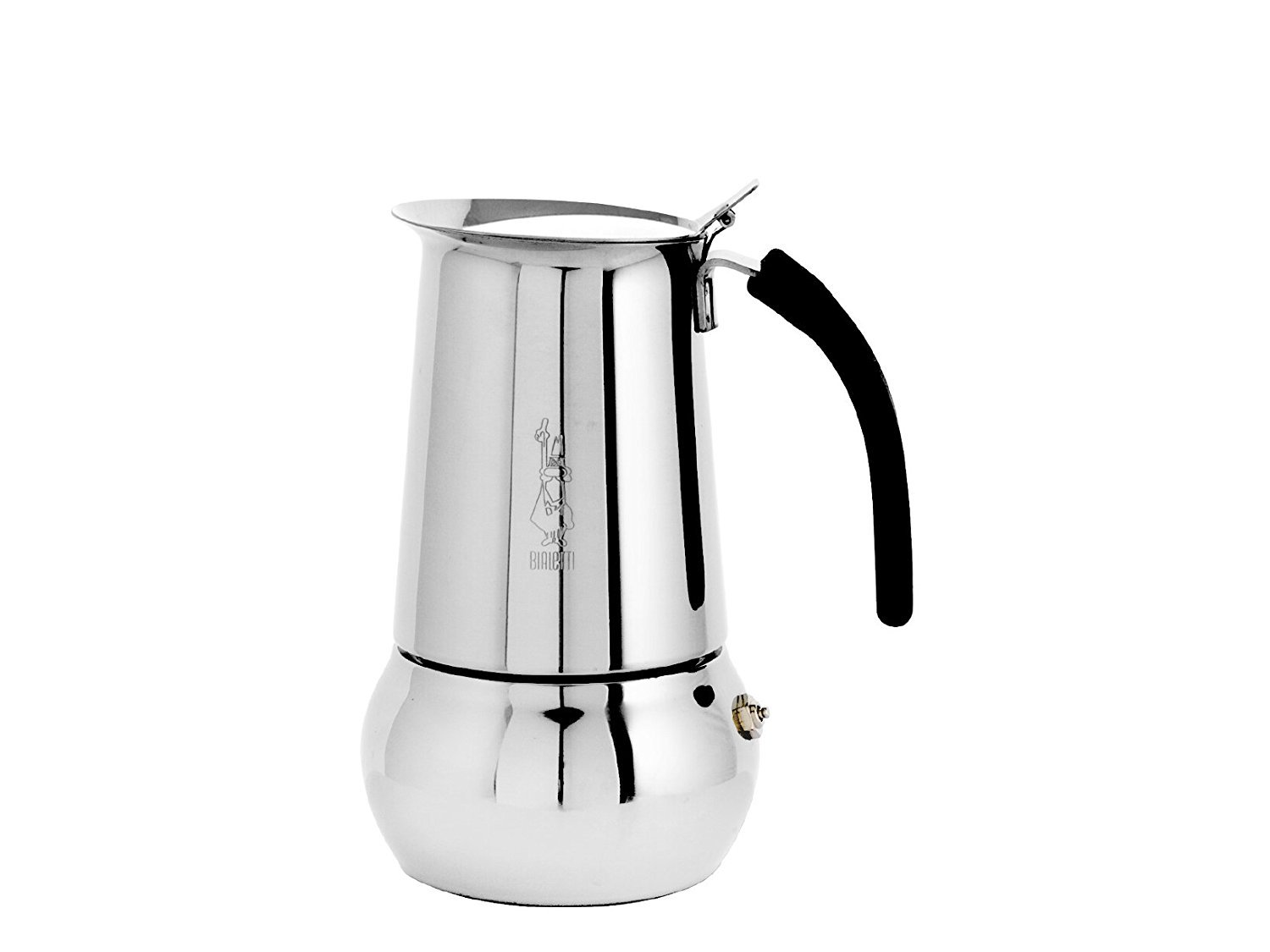 Изящная кофеварка из нержавеющей стали. Предохранительный клапан давления. Ручка из необжигающего термостойкого материала. Кнопка из стали. Упаковка: коробка Для приготовления кофе на электрических и газовых плитах, а также других нагревающих поверхностях. Подходит для индукционных плит. 14,3x19,8x11,1 см