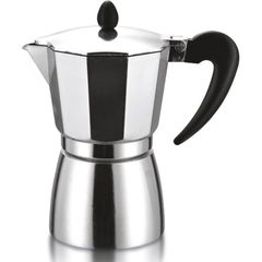 Кофеварка на шесть чашек 240 мл может заваривать кофе на на газовых, электрических и керамических плитах. Материал корпуса: алюминий.