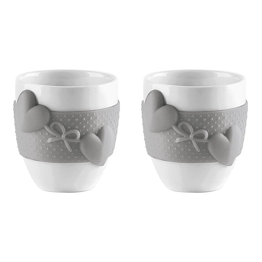 Набор чашек из фарфора с силиконовой вставкой с очаровательными сердцами подойдет для подачи эспрессо. Объем 80 мл. Чашки и кружки из коллекции LOVE созданы специально для уютных вечеров с горячим кофе, чаем или какао, что бы можно было неторопливо грея руки наслаждаться любимым напитком. Комбинируйте разные цвета различных предметов коллекции для создания гармоничной композиции.