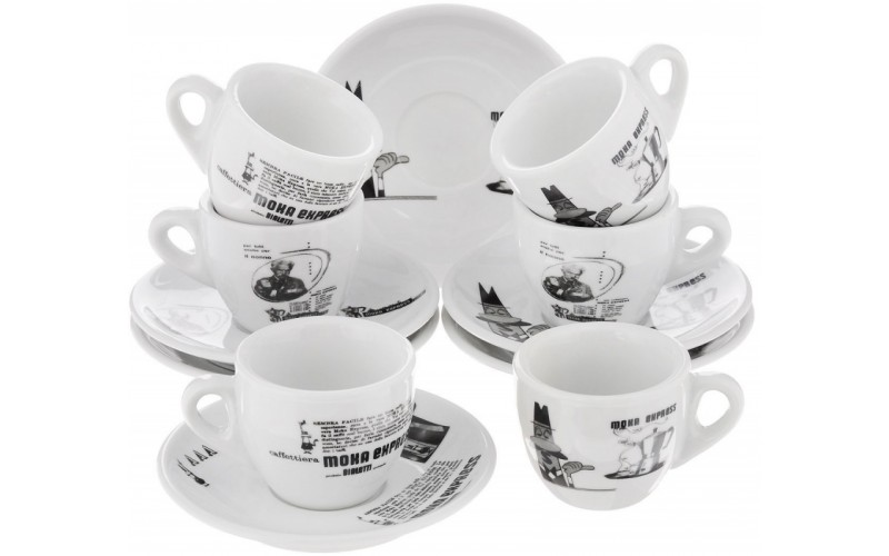 Набор из 6-ти кофейных пар Moka Carousel, 80 мл, 12 пр., фарфор, серый, Y0TZ037, Bialetti